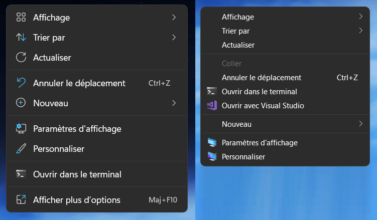À propos de clic-droit, j'en profite pour dire que celui de Windows 11 a changé. Désormais, il existe un menu simplifié, et une autre version traditionnelle, accessible lorsque l'on clique sur "Afficher plus d'options" dans le menu simplifié.