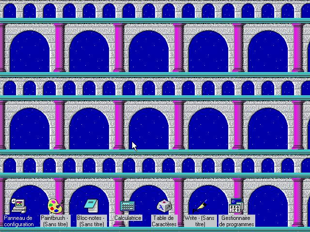 La troisième version de Windows, la première qui soit vraiment valable. L'interface est un peu plus ce qu'attendaient les utilisateurs. Nouveau style de fenêtre avec des boutons en 3D, possibilité de mettre une image en arrière-plan au format bitmap, et les fonctions de Windows sont organisées en groupes, et plus en vrac: