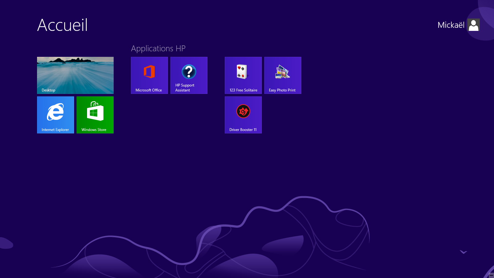 Puis, quand vous ouvrez une session, vous croisez directement une interface tablette, qui prend tout l'écran, nommée ModernUI (ou anciennement Metro). Tous les éléments cliquables sont à disposition de l'utilisateur, pouvant lui permettre de lancer n'importe quel logiciel en un clic. Cependant, puisque cette interface est spécialement conçue pour les tablettes, elle peut être déroutante ou simplement peu productive pour les interfaces bureau. Le moindre clic, ou rechercher une application parmi ce bazar de tuiles peut devenir un vrai casse-tête chinois. Quand on clique sur une tuile qui confère à une "app" Windows 8, cet écran permute sur une app en dehors du bureau qui prend tout l'écran.
