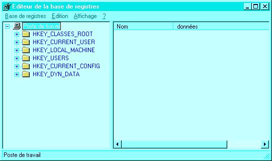 Sous Windows 1 et 2, il n'y avait pas le registre. Sous Windows 3 il y en avait un, mais il était à un stade très peu avancé. Sous Windows 95 le registre renaît, il est complet et il n'a pas changé depuis. Ha si, il a changé: il y a une ruche appelée HKEY_DYN_DATA, qui a disparu sous les versions NT de Windows.